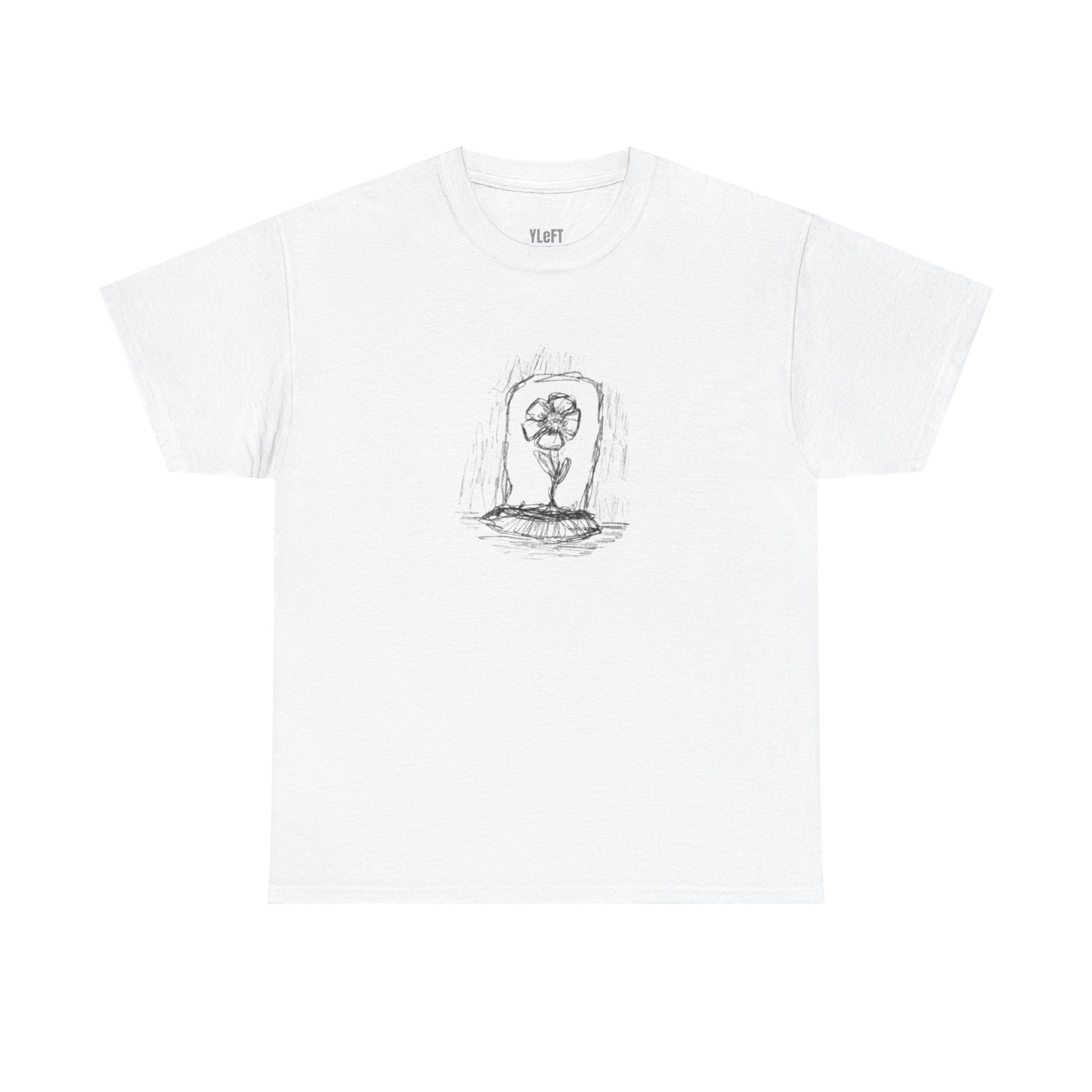 This tee features a delicate drawing of a single flower encased in glass, symbolizing beauty preserved in time. The fine line work captures both the softness of the bloom and the smooth, protective shield around it, creating a balance between fragility and strength. Minimalist and meaningful, this design adds a quiet, artistic touch to any look.