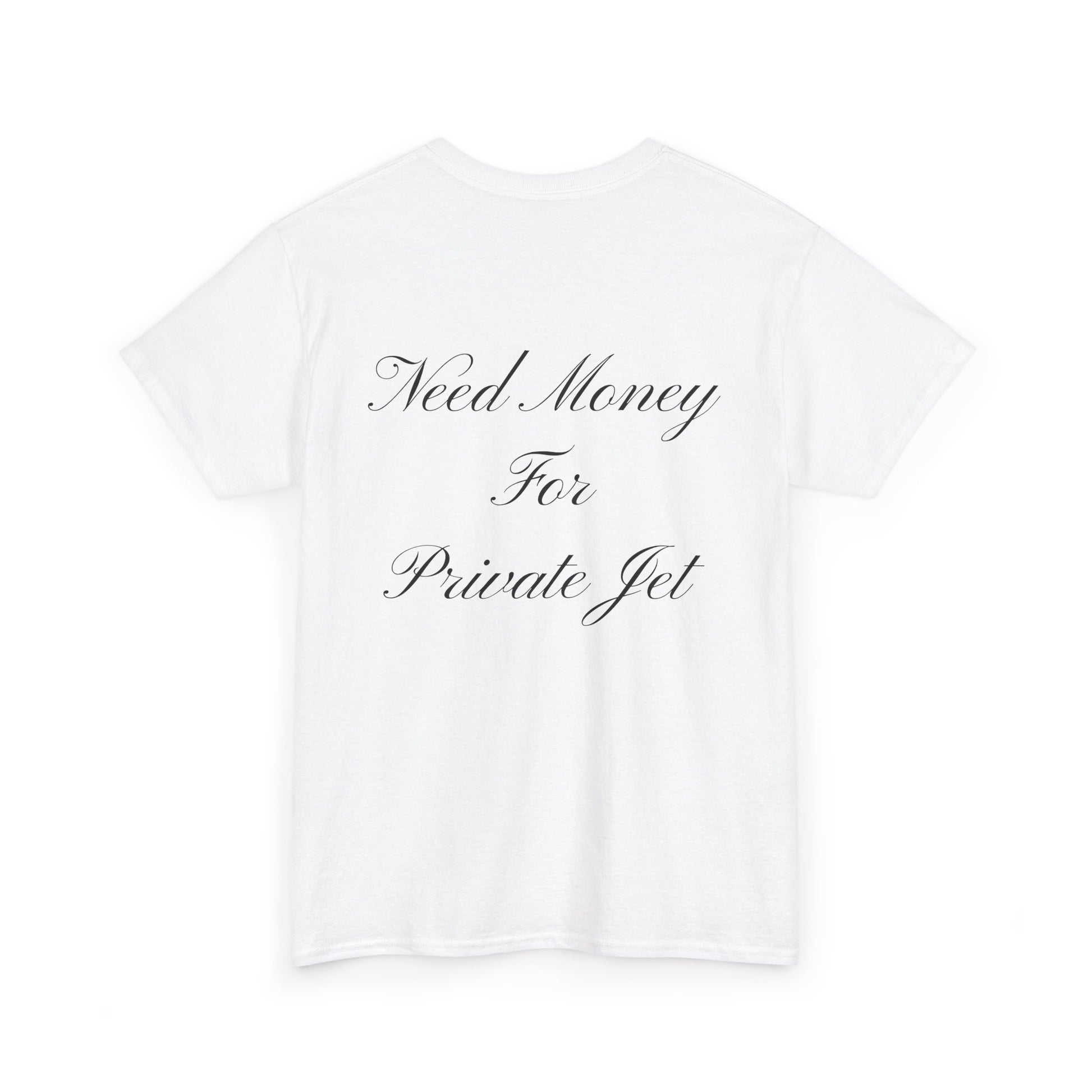Let your wardrobe do the talking. This tee features “Need money for a private jet” written in elegant cursive across the back. Designed for go-getters with high goals and a great sense of humor, it’s a wearable reminder to stay focused on the bigger picture.